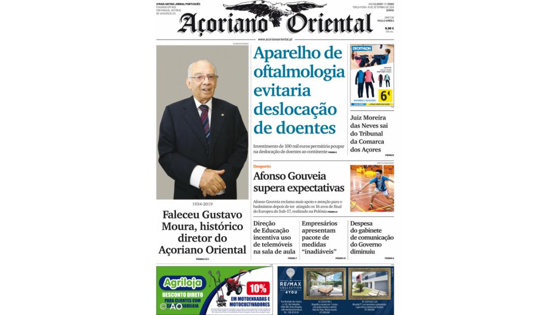 "Faleceu Gustavo Moura, histórico diretor do Açoriano Oriental" destaca a edição desta terça-feira do Açoriano Oriental.