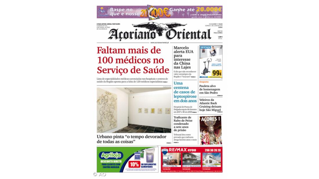 Na edição deste domingo, noticia ainda que o Presidente da República alertou os EUA para que não deixem espaço à China nas Lajes e que, em dois anos, hospital de Ponta Delgada seguiu 106 casos de leptospirose.