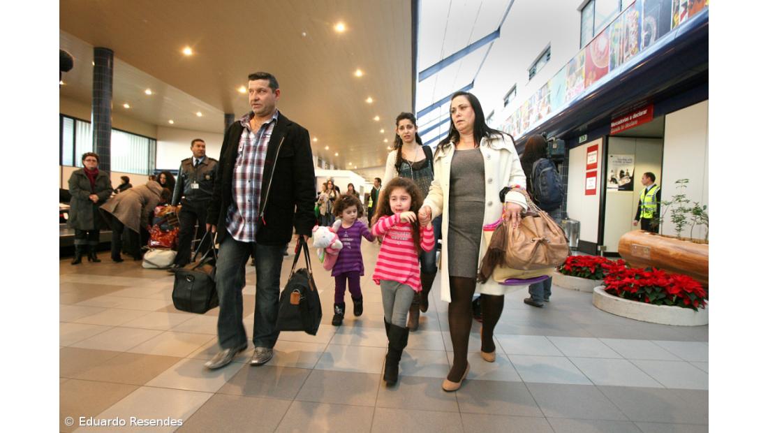 Com ar cansado e alguns com lágrimas nos olhos, os membros de família Sebastião tinham a esperá-los no aeroporto os pais de Maria Irene, que acompanhou os emigrantes à sua nova morada.
