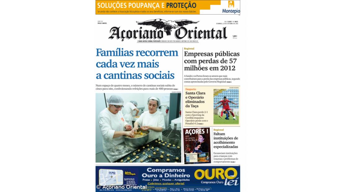 Faltam instituições de acolhimento especializadas para crianças com traumas e problemas de comportamento e Santa Clara e Operário eliminados da Taça são outros títulos de capa do matutino micaelense.