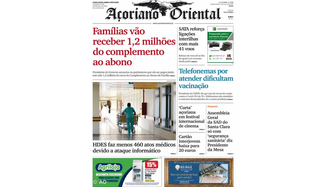 "Telefonemas por atender dificultam vacinação" e "SATA reforça ligações interilhas com mais 41 voos" são outros destaques do jornal.