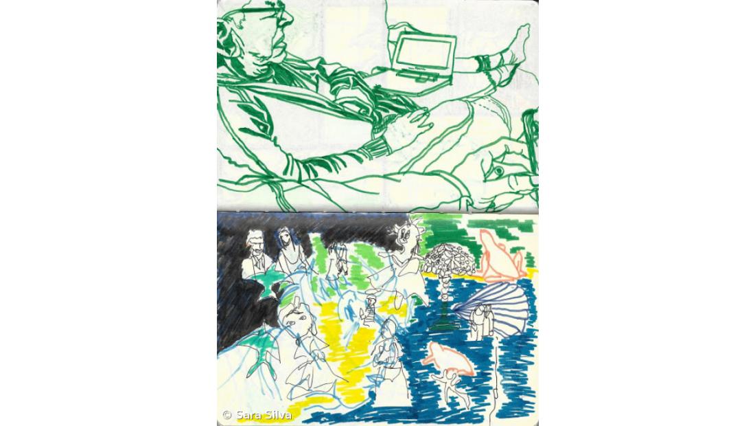 desenho que estava no meu caderno há alguns dias. Outro, onde brinquei