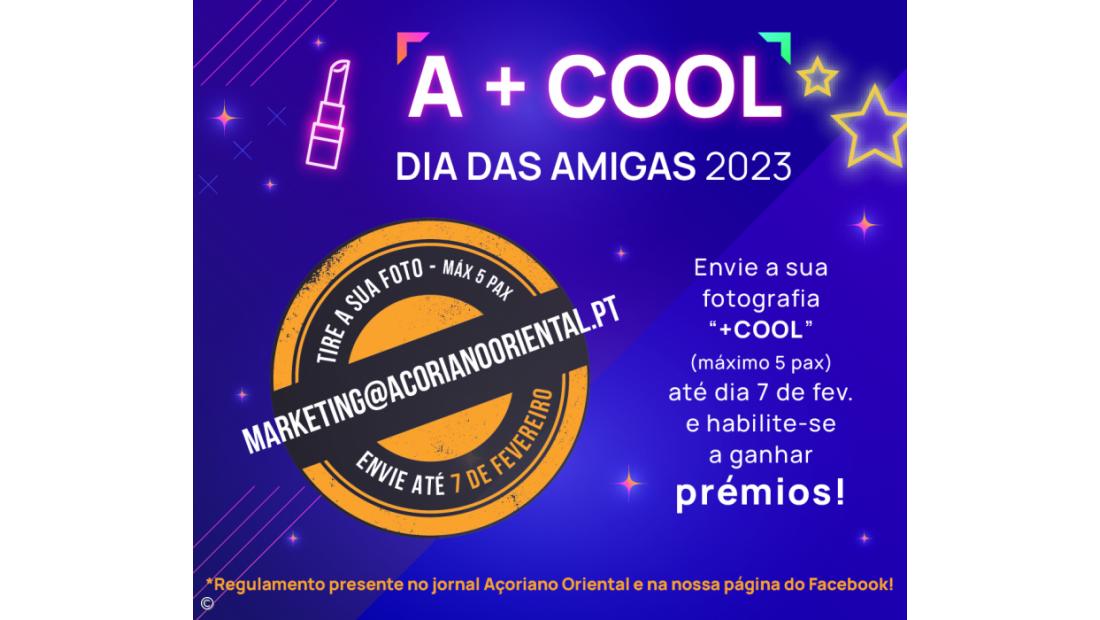 Nesse sentido, no dia 2 de fevereiro, a Açoriano Oriental desafia-a a tirar a fotografia “+ COOL” quando estiver a festejar em grupo com as suas amigas (máximo cinco pessoas por foto), podendo habilitar-se a ganhar prémios, com o patrocínio do Restaurante Associação Agrícola na Ribeira Grande e da loja FOTOTEC no Paim em Ponta Delgada.