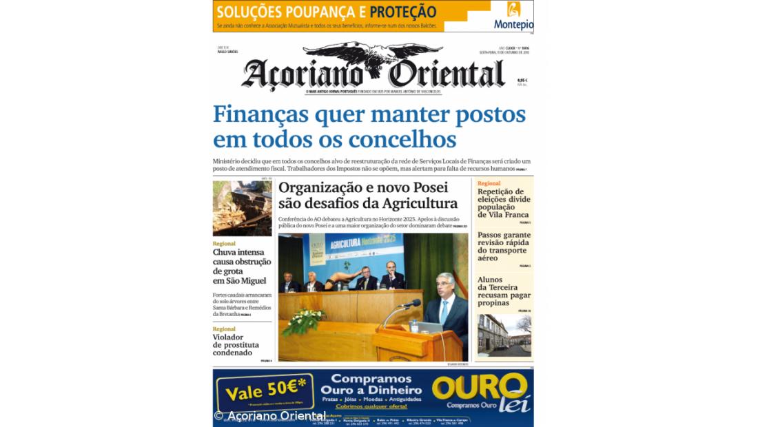 "Finanças quer manter postos em todos os concelhos" é a manchete do Açoriano Oriental