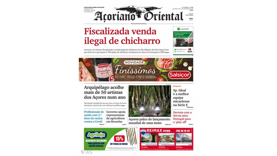 "Arquipélago acolhe mais de 50 artistas dos Açores num ano" e "Profissionais de saúde com 3.ª dose da vacina contra a Covid" são outros destaques do jornal.
