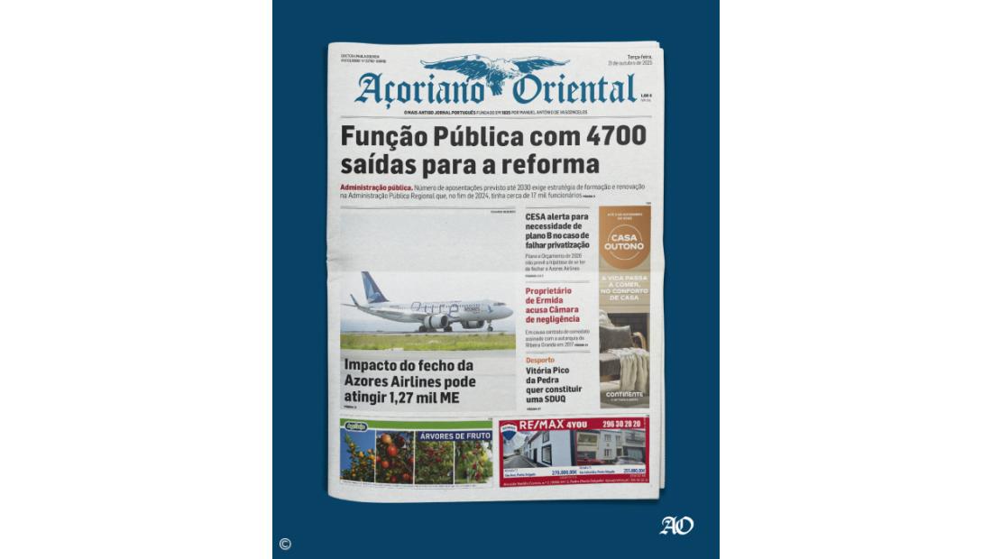 "Função Pública com 4700 saídas para a reforma" é a manchete da edição desta terça-feira do Açoriano Oriental.