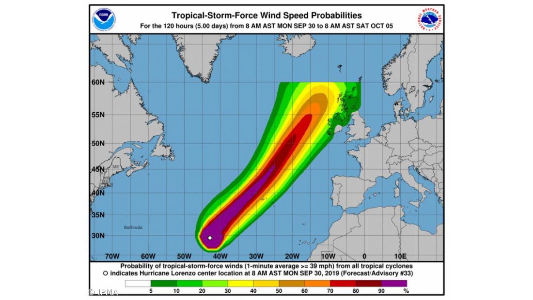 De acordo com comunicado da Delegação Regional dos Açores do Instituto Português do Mar e da Atmosfera, mantendo-se as previsões da trajectória, o centro do furacão deverá passar com categoria 1, na