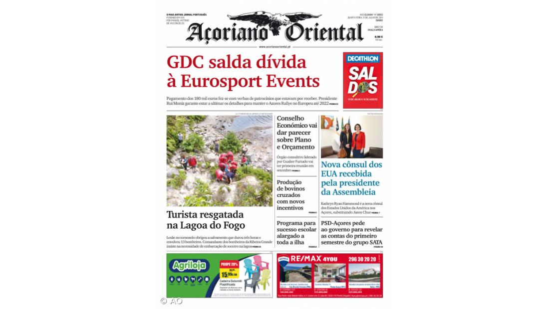 "Nova Cônsul dos EUA recebida pela presidente da Assembleia" e "PSD-Açores pede ao governo para revelar as contas do primeiro semestre do grupo SATA" são outros destaques do jornal.
