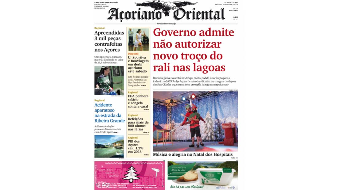Capa faz chamada fotográfica para o Natal dos Hospitais e destaca ainda a apreensão de material contrafeito no valor estimado de 25,5 mil euros, um acidente aparatoso na estrada da Ribeira Grande, a queda do PIB dos Açores, a penhora da EDA a salário e congelamento de conta de casal; e para a notícia de que mais de 800 alunos têm necessidade de refeições gratuitas nas férias de Natal.