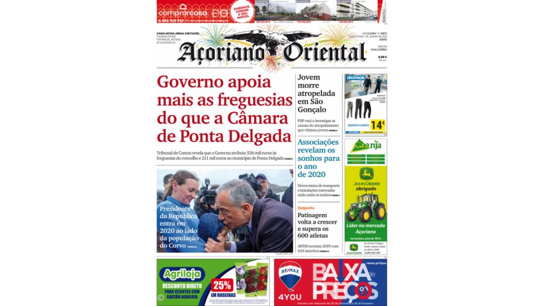Outros títulos desta edição: "Jovem morre atropelada em São Gonçalo", "Associações revelam os sonhos para o ano de 2020", "Patinagem volta a crescer e supera os 600 atletas" e "Presidente da República entra em 2020 ao lado da população do Corvo".
