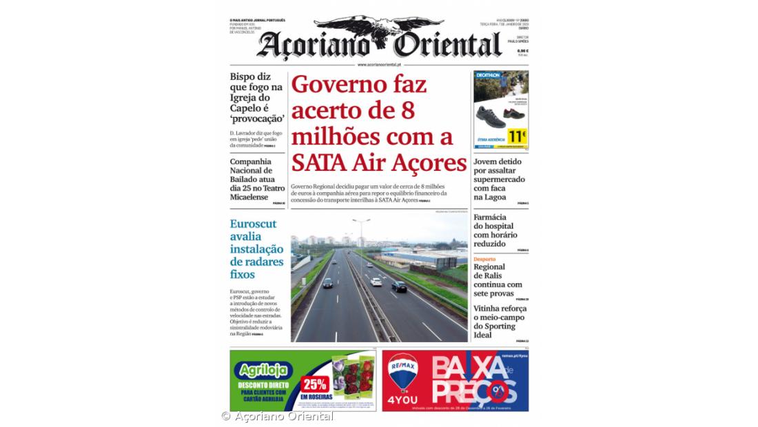 "Euroscut avalia instalação de radares fixos" é a manchete fotográfica do Açoriano Oriental. "Bispo diz que fogo na Igreja do Capelo é 'provocação'", "Companhia Nacional de Bailado atua dia 25 no Teatro", "Jovem detido por assaltar supermercado com faca na Lagoa", "Farmácia do hospital com horário reduzido", "Regional de Ralis continua com sete provas" e "Vitinha reforça o meio-campo do Sporting Ideal" são os restantes títulos de capa do Açoriano Oriental.