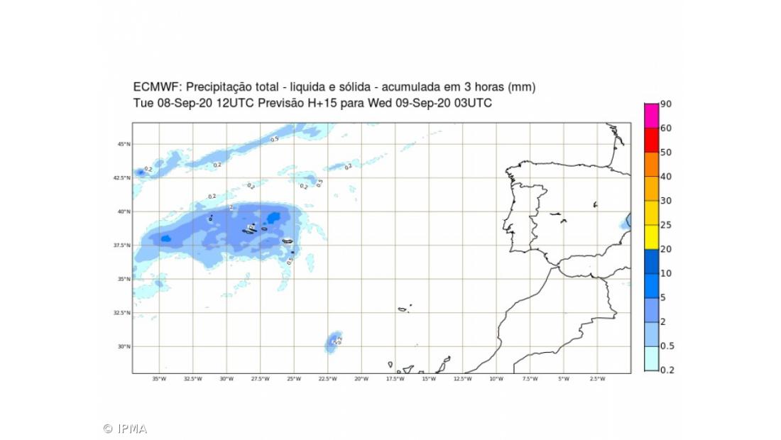 Segundo nota, nas próximas horas, poderá ocorrer precipitação forte, que poderá ser acompanhada de trovoada, em especial no Grupo Central.