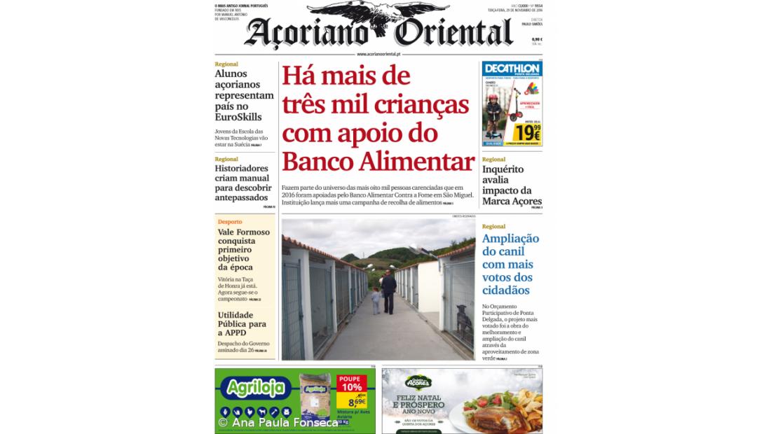 Há mais de três mil crianças com apoio do Banco Alimentar, é a manchete do Açoriano Oriental. Fazem parte do universo das mais oito mil pessoas carenciadas que em 2016 foram apoiadas pelo Banco Alimentar Contra a Fome em São Miguel. Instituição lança mais uma campanha de recolha de alimentos