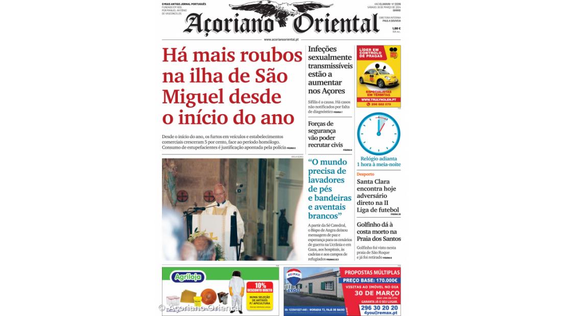 "Há mais roubos na ilha de São Miguel desde o início do ano" é a manchete do Açoriano Oriental
