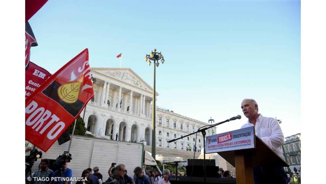 Numa intervenção proferida perante os dirigentes e ativistas sindicais que estão concentrados junto à Assembleia da República, em Lisboa, Arménio Carlos considerou que "é tempo de mudar de rumo de acabar com a política de direita" do Governo do PSD/CDS.