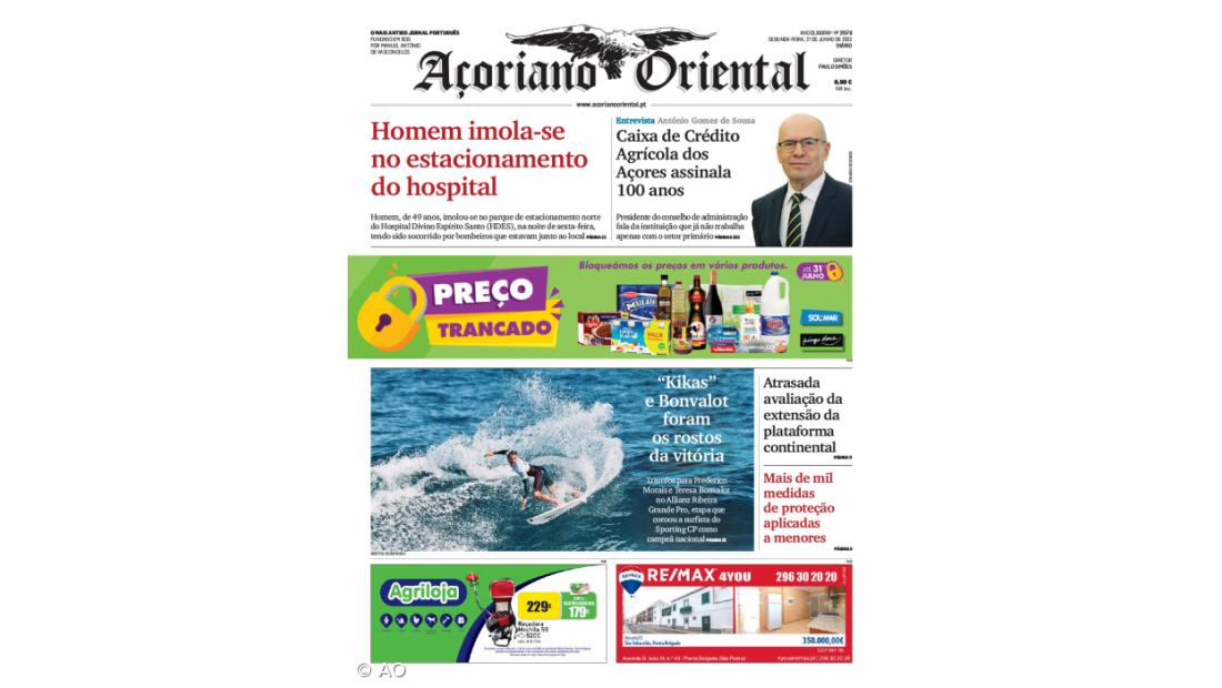 As notícias de que a avaliação da extensão da plataforma continental portuguesa está atrasada e que há mais de mil medidas de proteção aplicadas a menores nos Açores são outros dos assuntos desenvolvidos no jornal desta segunda-feira, onde os vencedores do campeonato de surf Allianz Ribeira Grande Pro é o destaque do Desporto.