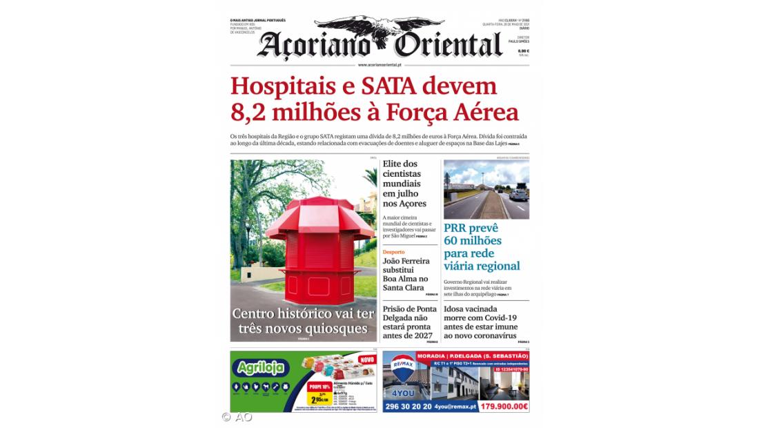 "Centro histórico vai ter três novos quiosques", é o título do destaque fotográfico da capa do Açoriano Oriental.