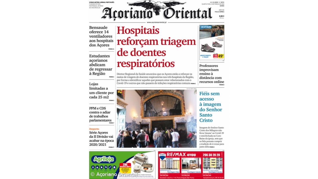 "Hospitais reforçam triagem de doentes respiratórios" é a manchete do Açoriano Oriental