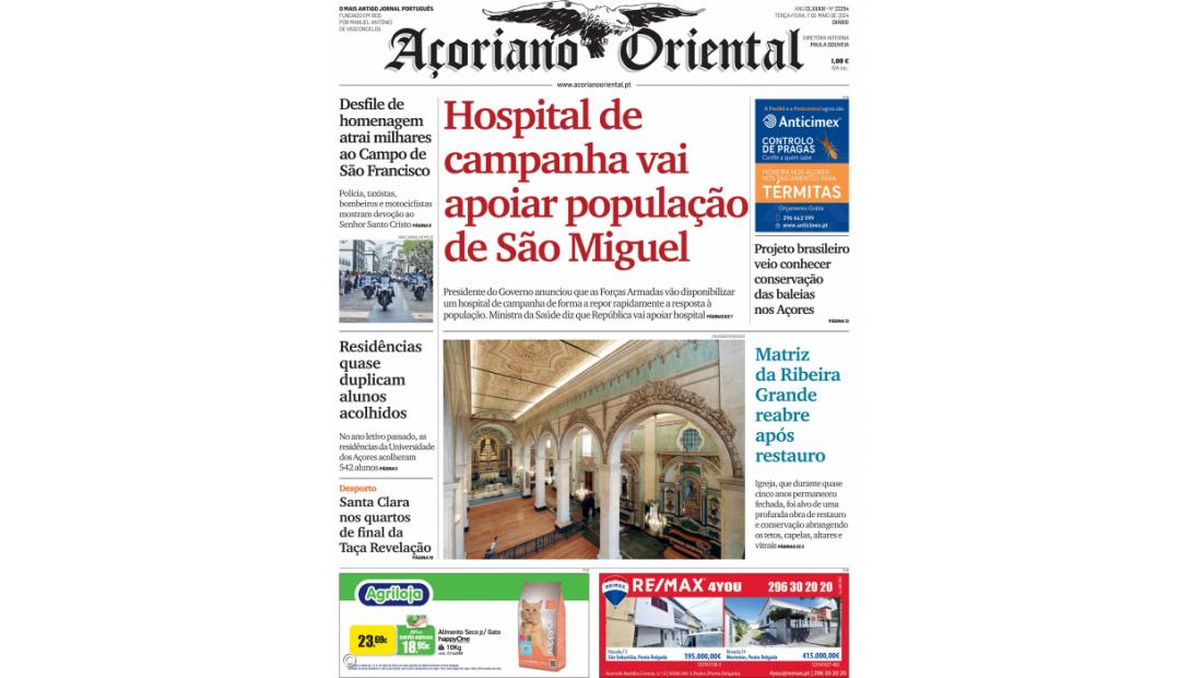 "Hospital de campanha vai apoiar população de São Miguel" é a manchete da edição desta terça-feira do Açoriano Oriental