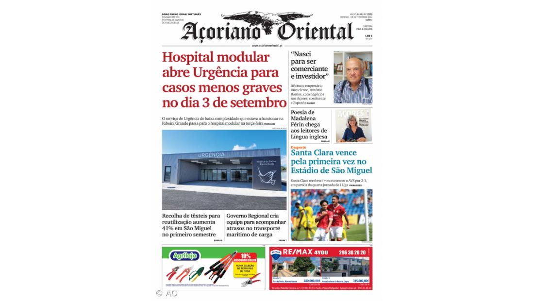 "Nasci para ser comerciante e investidor" e "Recolha de têxteis para reutilização aumenta 41% em São Miguel no primeiro semestre" são outros destaques do jornal.