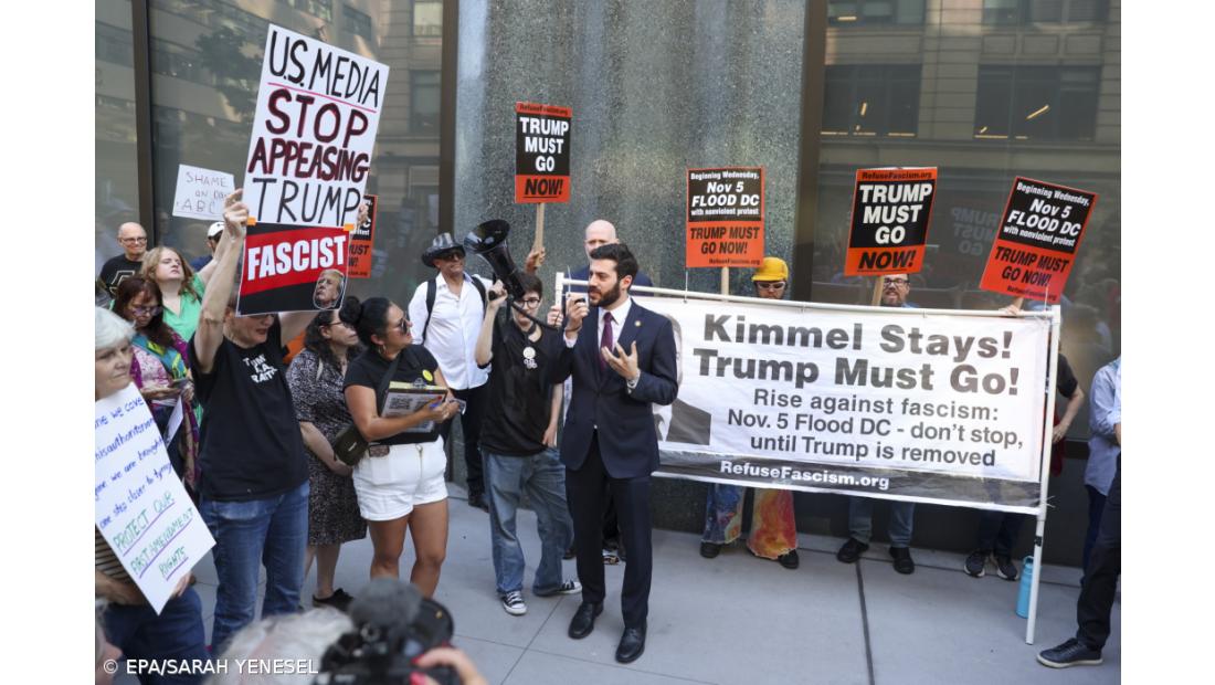 A televisão ABC suspendeu-lhe o programa depois de o presidente da entidade reguladora das comunicações dos EUA (FCC, na sigla inglesa), Brendan Carr, ter dito que havia fortes argumentos contra Kimmel e que a empresa-mãe, Walt Disney Company, podia vir a ser responsabilizada.
