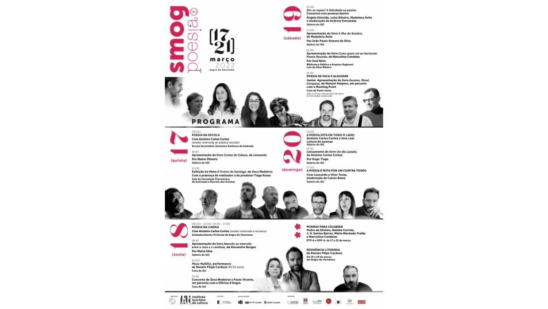 A nota explica que “esta edição do Smog - Poesia acontece com um ano de atraso por causa da pandemia que a todos nos confinou, que a todos cortou a liberdade. E regressa no mês da poesia e das árvores, para celebrar a arte de fazer versos, devolvendo a poesia de Marcolino Candeias (1952-2016) à cidade. Regressa para celebrar Pedro da Silveira (1922-2003), no centenário do seu nascimento e recordar o de Natália Correia (1923-1993) que está aí ao virar da esquina. Regressa para divulgar as poéticas de J. H. Santos Barros (1946-1983) e de Mário Machado Fraião (1952-2010). Ou para dar a conhecer livros novos de novos autores, como Madalena Ávila, Alexandre Borges, Vítor Teves ou Leonardo, e para debater a felicidade e a poesia feminina, pela voz de Ângela Almeida, Madalena Ávila ou Luísa Ribeiro. Havendo ainda espaço para um diálogo entre dois poetas da nova geração açoriana, que trocarão argumentos sobre o que é isso de ser poeta e questões correlacionadas”.
