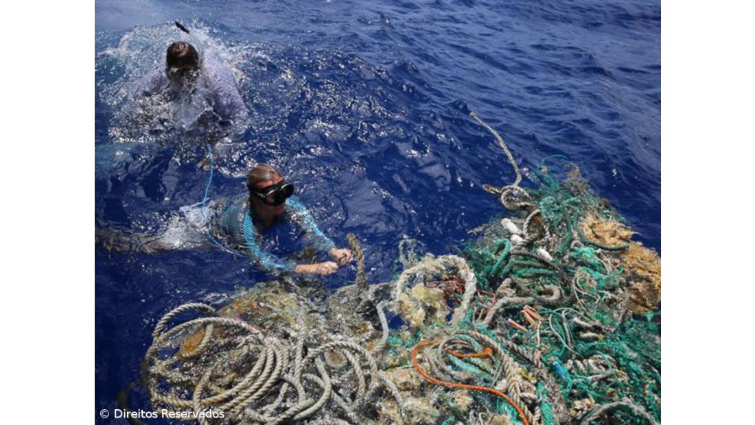 Toneladas de resíduos de vários tamanhos, incluindo redes,