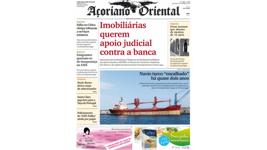 Açoriano Oriental destaca em manchete o apelo do representante das imobiliárias dos Açores dirigido à Câmara do Comércio e Indústria dos Açores e à AICOPA