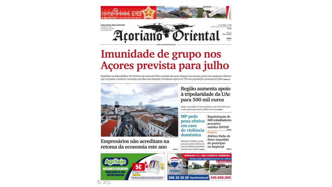 Nesta edição, noticia-se ainda que os empresários não acreditam na retoma da economia este ano; que o Ministério Público pede pena efetiva em caso de violência doméstica grave; e que a Região aumenta o apoio à tripolaridade da UAc para 500 mil euros.