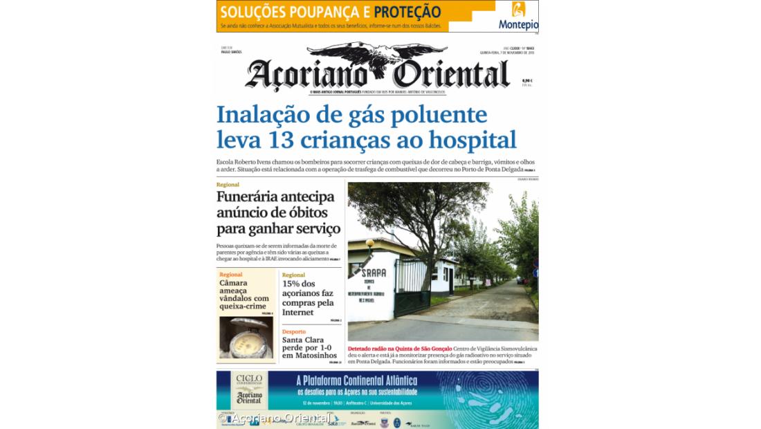 "Inalação de gás poluente leva 13 crianças ao hospital" é a manchete do Açoriano Oriental