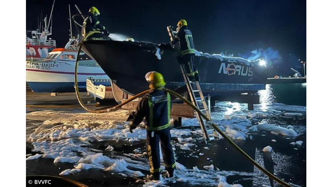 Incêndio numa embarcação no porto de pesca de Vila Franca