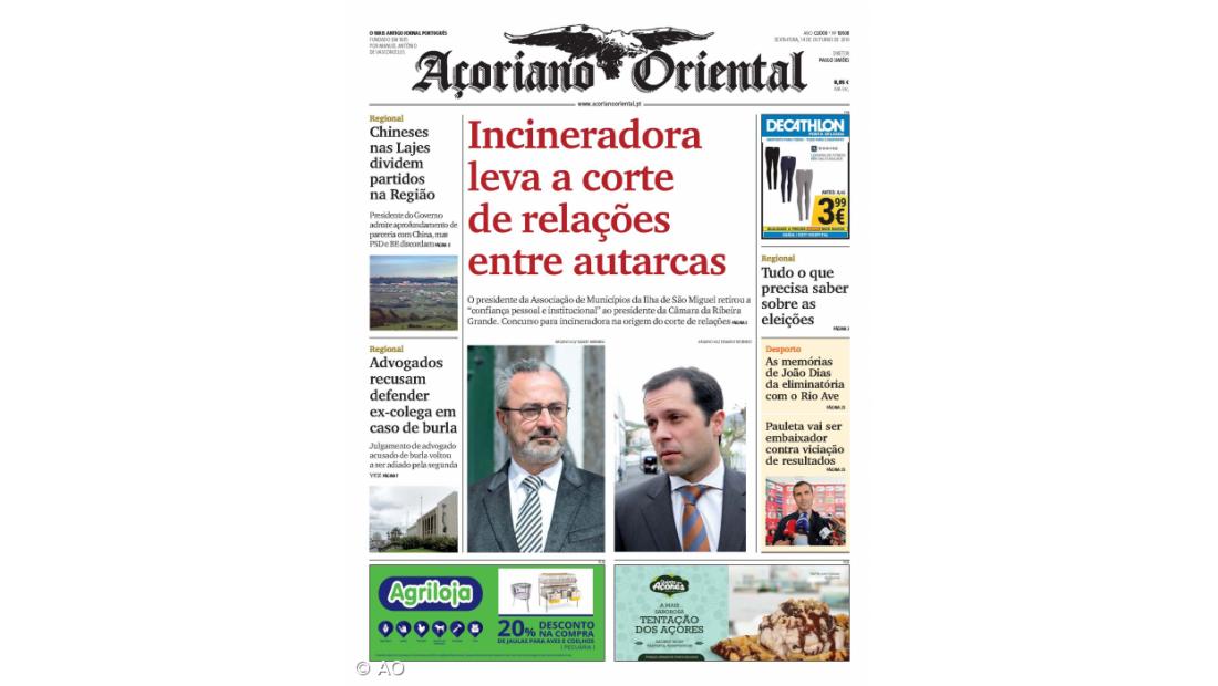 Na primeira página, destaque para as reações ao anunciado interesse da China nas Lajes e para o adiamento do julgamento de um advogado acusado de burla.