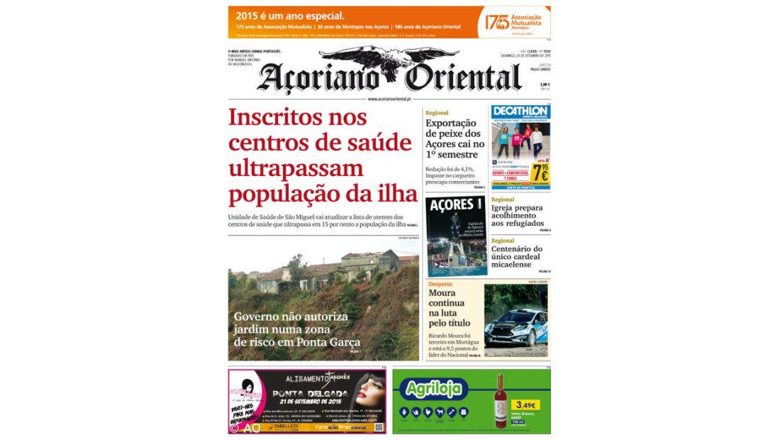 A atualização da lista de utentes dos centros de saúde que vai ser feita em São Miguel após verificar-se que ultrapassa em 15 por cento a população da ilha está em destaque no Açoriano Oriental de domingo, 20 de setembro de 2015.