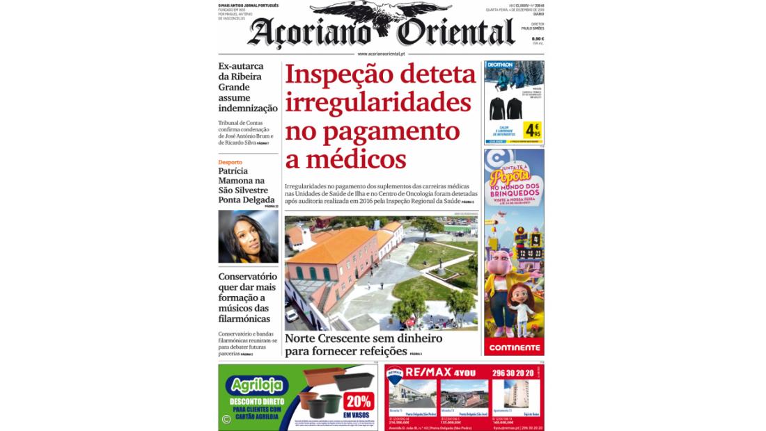 "Inspeção deteta irregularidades no pagamento a médicos" é a manchete desta quarta-feira do Açoriano Oriental.