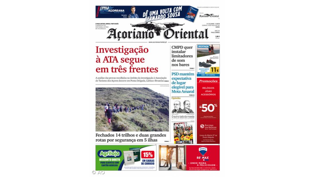 O destaque fotográfico do jornal vai para o fecho de 14 trilhos e duas grandes rotas por motivos de segurança em cinco ilhas dos Açores.