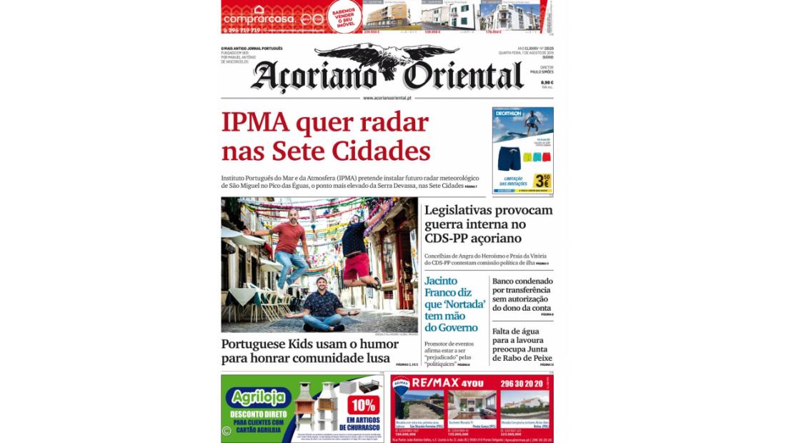 "IPMA quer radar nas Sete Cidades" é a manchete do Açoriano Oriental desta quarta-feira.
