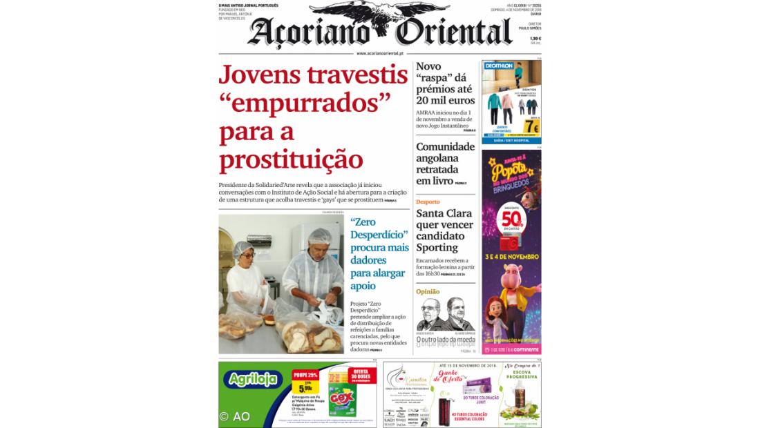 "Jovens travestis 'empurrados' para a prostituição" é a manchete deste domingo do Açoriano Oriental