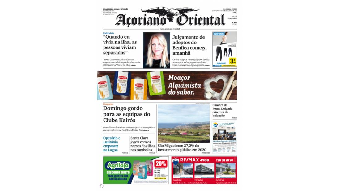 "São Miguel com 37,2% do investimento público em 2020" "Câmara de Ponta Delgada cria rota da baleação" são outros destaques desta edição.