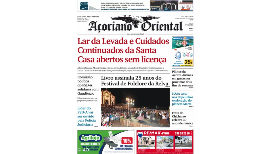 "Comissão Política do PSD-A solidária com Gaudêncio" e "Líder do PSD-A vai ser ouvido pela Polícia Judiciária" são outros destaques do jornal.