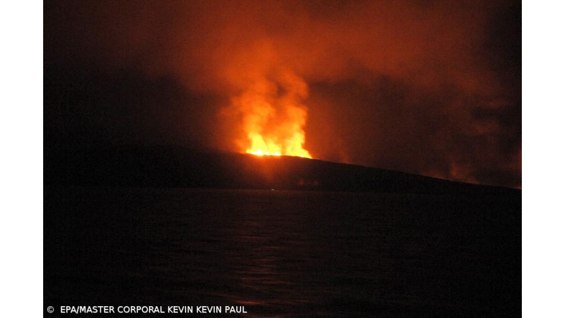 O vulcão lançou lava e cinzas a dezenas de metros, referiu domingo a Marinha canadiana, que se encontrava próximo do local.