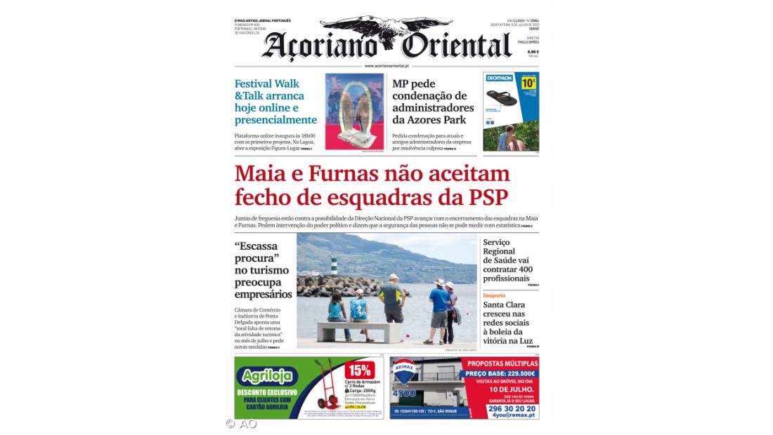 “Escassa procura” no turismo preocupa empresários, é o título do destaque fotográfico da cpa do Açoriano Oriental.