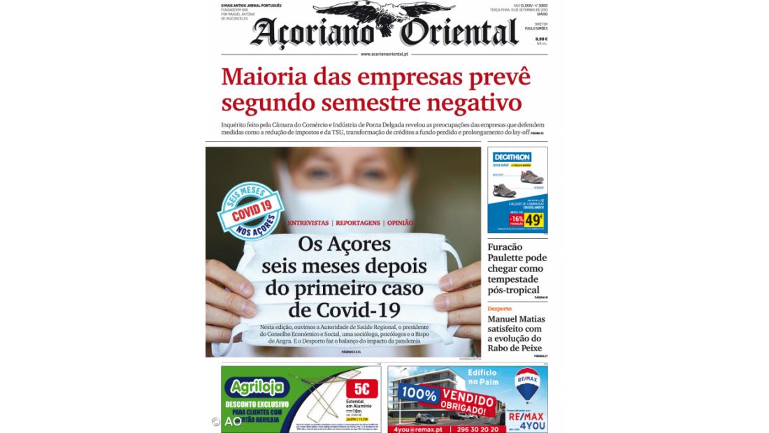 Nesta edição, publicamos ainda uma série de trabalhos sobre o impacto da Covid-19 na Região, no dia em que se assinalam seis meses do primeiro caso da doença nos Açores. Deste modo, o leitor encontra no jornal de hoje, uma retrospetiva dos principais acontecimentos dos últimos meses; entrevistas com Gualter Furtado, presidente do Conselho Económico e Social, e ainda com Tiago Lopes, Autoridade de Saúde Regional; com a socióloga Piedade Lalanda; e os psicólogos Pedro Almeida Maia e Maria Luz Melo, e ainda com o Bispo de Angra.