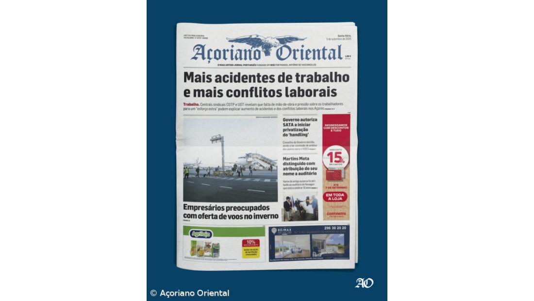 O destaque fotográfico do Açoriano Oriental desta sexta-feira dá conta da preocupação dos empresários com a oferta de voos no inverno em Ponta Delgada.