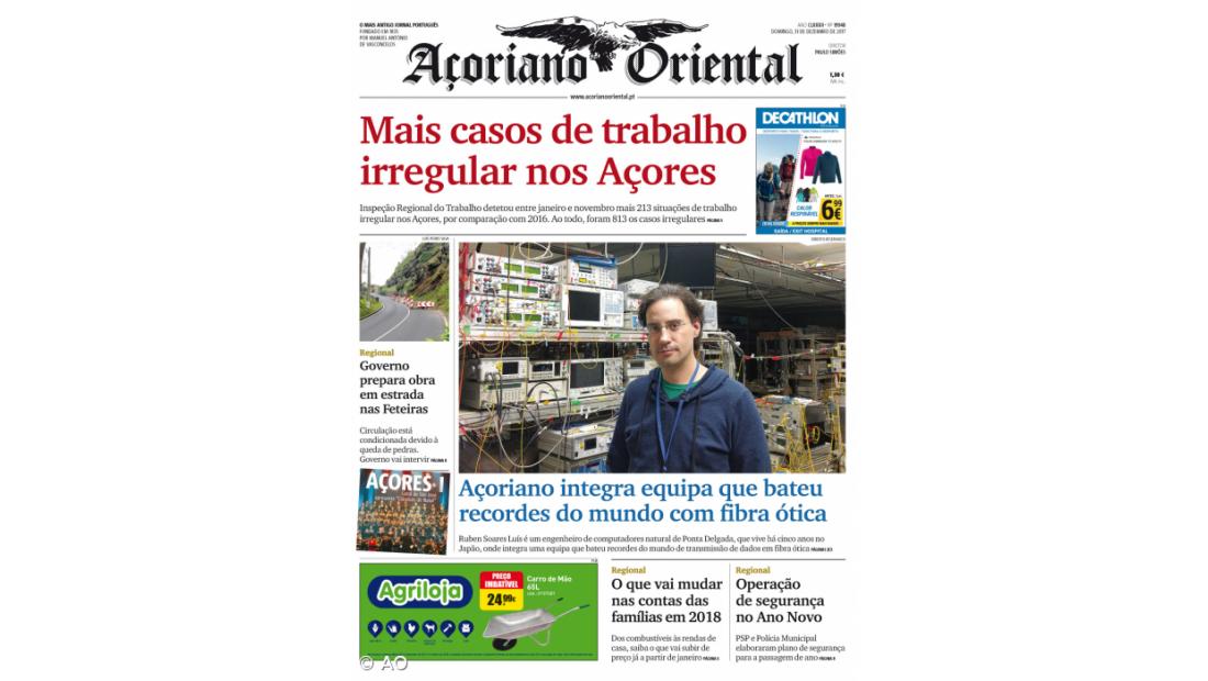 O destaque fotográfico do jornal vai para o engenheiro de computadores açoriano, Ruben Soares Luís, que integra no Japão uma equipa que bateu recordes mundiais de transmissão de dados por fibra ótica.