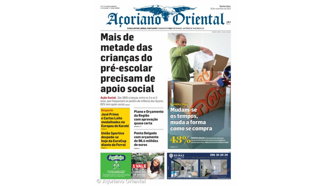 O facto de mais de metade (60%) das crianças que frequentam o ensino pré-escolar nos Açores precisar apoio social está em destaque no Açoriano Oriental de quinta-feira, 28 de novembro de 2024