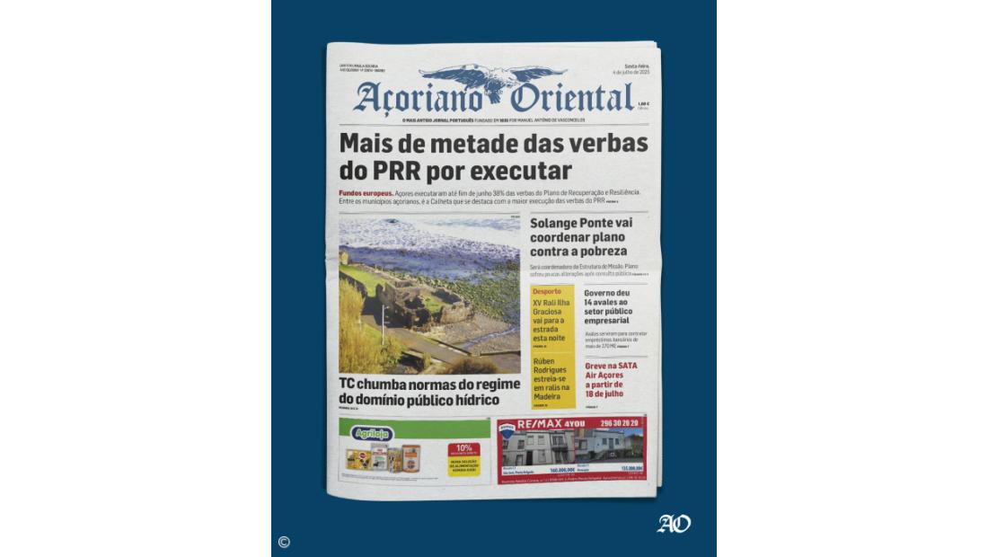 "Mais de metade das verbas do PRR por executar" é a manchete da edição desta sexta-feira do Açoriano Oriental.