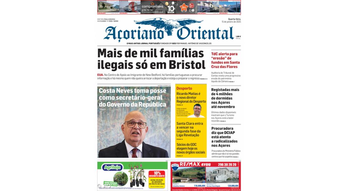 A situação dos emigrantes açorianos nos Estados Unidos da América, onde só no condado de Bristol se estima que existam mais de mil famílias ilegais e em risco de deportação, está em destaque no Açoriano Oriental de quarta-feira, 15 de janeiro de 2025.