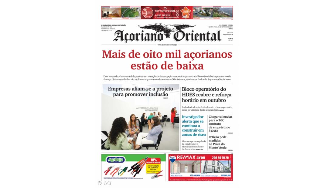 Açoriano Oriental noticia que há mais de oito mil pessoas nos Açores que estão de baixa, a maioria por doença