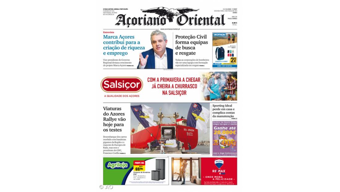 "Viaturas do Azores Rallye vão hoje para os testes", é o título do destaque fotográfico da capa do Açoriano Oriental.