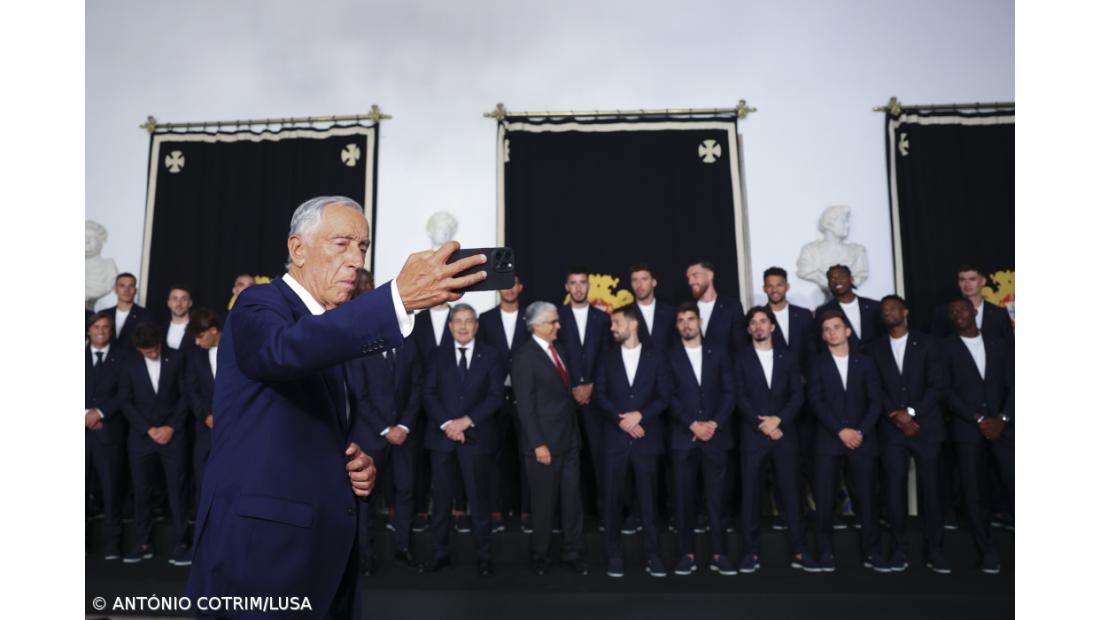 Marcelo e o presidente da Assembleia de República, José Pedro Aguiar-Branco, receberam no Palácio de Belém a comitiva lusa, chefiada pelo líder da Federação Portuguesa de Futebol, Fernando Gomes, e tiraram uma fotografia de grupo, antes de a seleção rumar em 13 de junho à Alemanha para o Europeu.